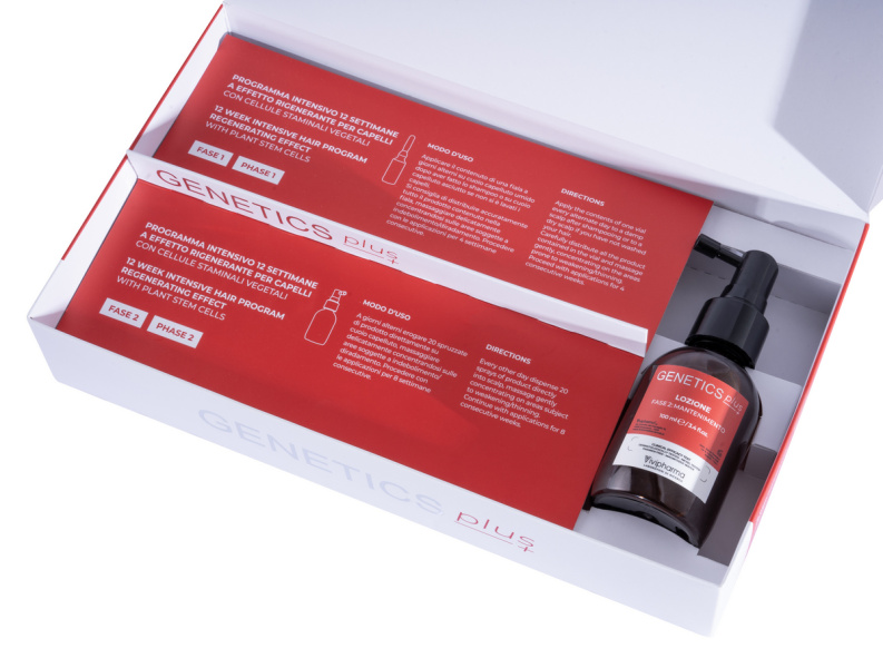 Klinické studie prokazují, že kmenové buňky z jablka při kontaktu s kůží spouštějí regenerační procesy kůže. V praxi pak stimulují buňky, které časem zpomalují svou obnovovací funkci. Vlasy jsou v důsledku užívání Genetics plus hustší, silnější a mají větší objem. Celkově má kúra na vlasy posilující a omlazující účinek.